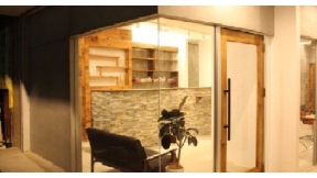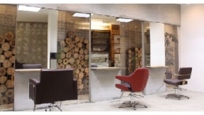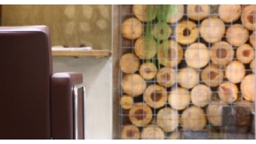 壁一面に木材でお客様がリラックスできる空間!
